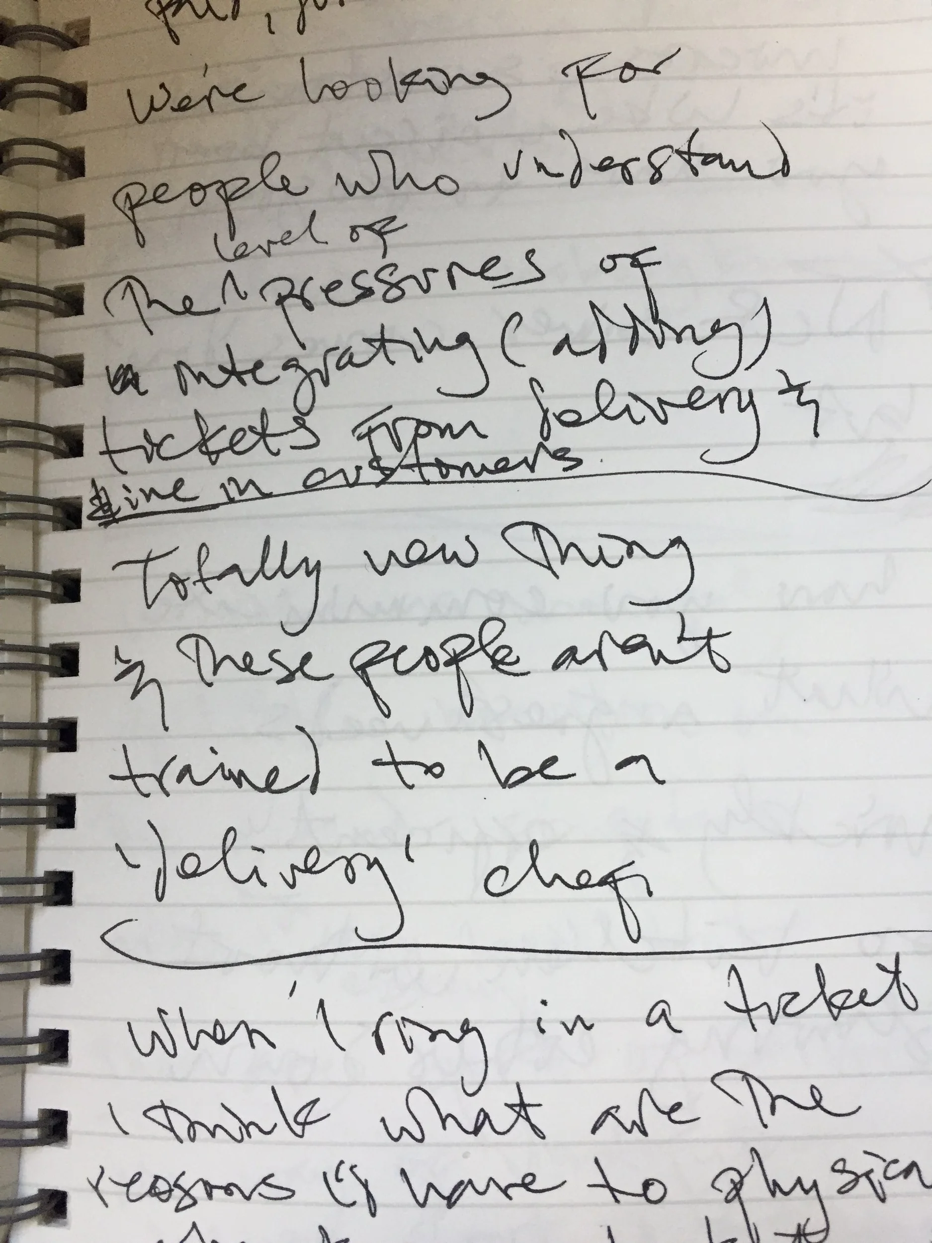 “We’re looking for people who understand the level of pressure (involved in) integrating tickets from delivery and dine-in customers.”